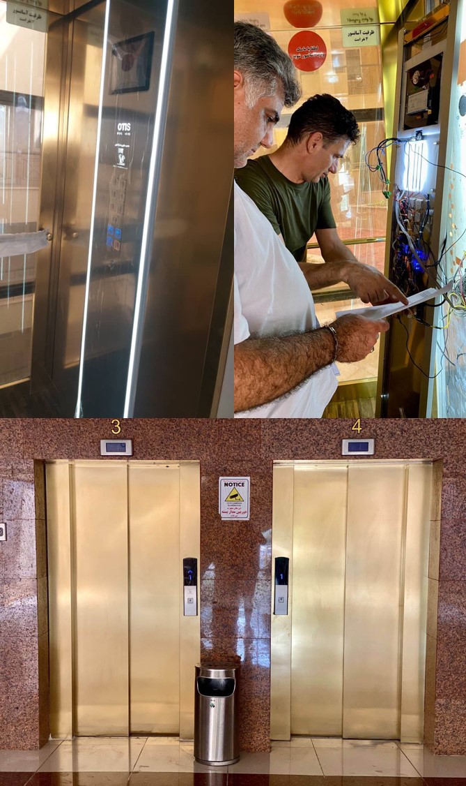 جزئیات بطور خلاصه: تعویض ریزقطعات آسانسورها، تعویض بردهای مبدل و دوبلکس، تعویض پنل کابینها، تعویض برد و موتور سردرب آسانسورها، تعویض کنتاکتور، چشم پردهای و روغندان، خرید و نصب سیستم اعلام طبقات، خرید و نصب سیستم اورلود دیجیتال، خرید و نصب فن پنل و هواکش کابینها، خرید و نصب تزئینات استیل و ام دی اف برای داخل کابینها، خرید و نصب ۵ دستگاه کنترلر دسترسی ساکنین (یا اکسس کنترل)، تعمیر کامل بردهای اصلی LCB2 دو آسانسور، تعمیر کامل درایو یکی از آسانسورها، خرید و نصب تمامی تجهیزات جهت راهاندازی آسانسور شماره ۵، انتقال موتور آسانسور شماره ۵ به تهران و تعمیر کامل، ساخت رولر و پایه رولر کابین برای آسانسور شماره ۵